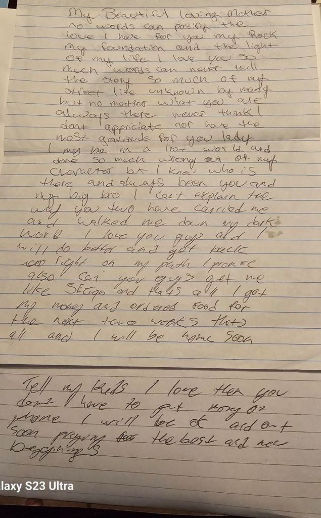 This is a letter Thomas wrote to our Mom. He was facing a challenge at the time. 💕